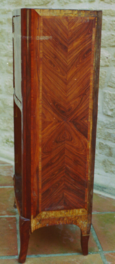Ce secrétaire de dame d’époque Louis XVI plaqué de bois de violette avec frisages en ailes de papillon et de filets de bois de rose en travers fils est l’œuvre de l’ébéniste parisien Denis Genty.
