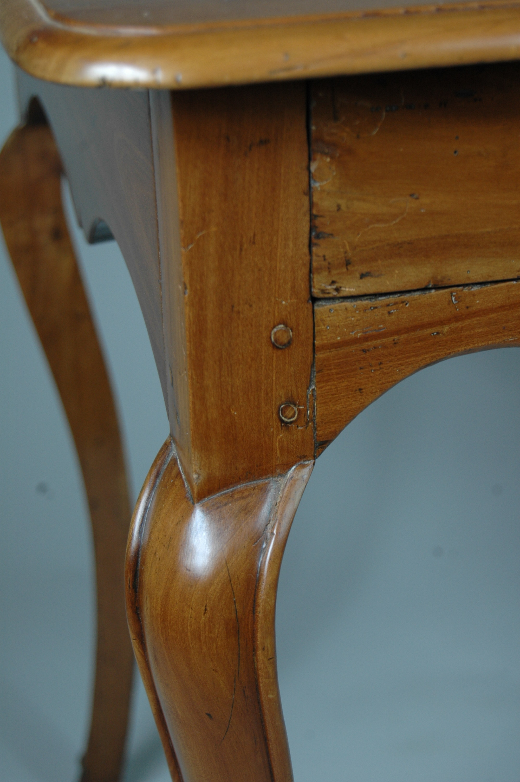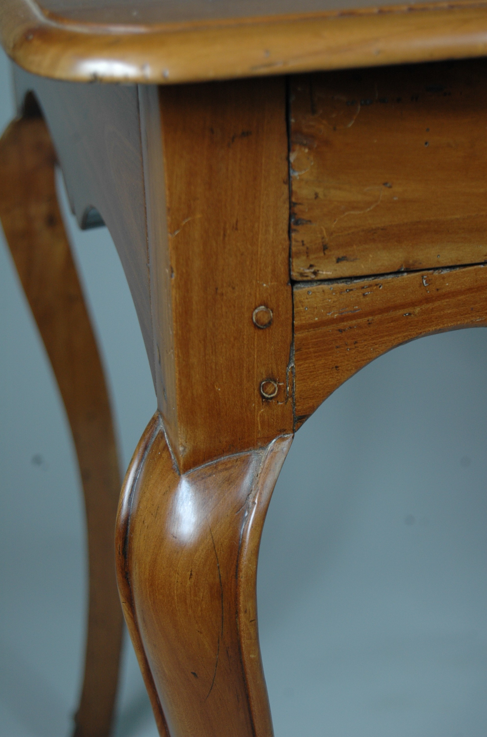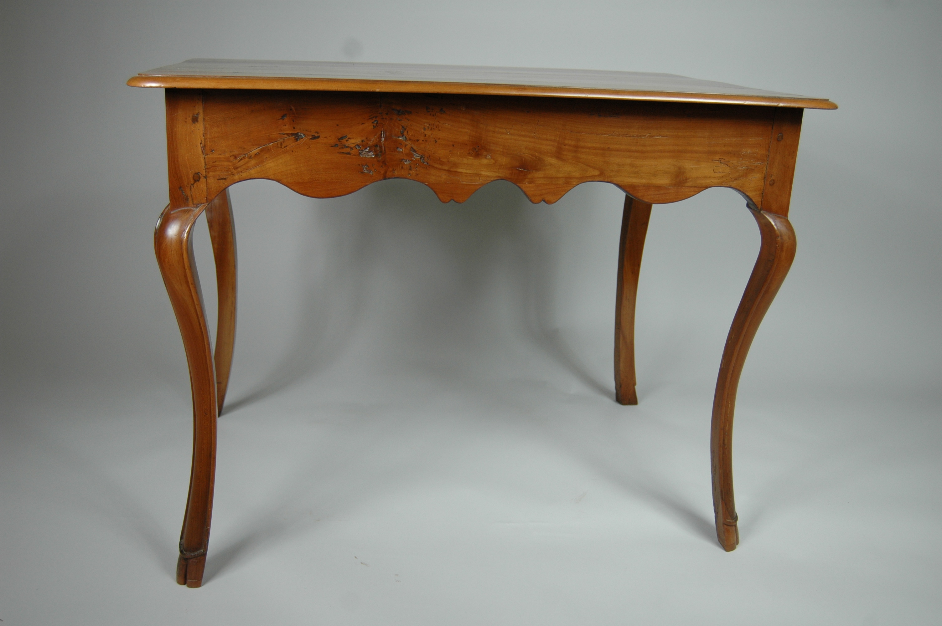 Table d'appoint Louis XV en merisier Table d'appoint Louis XV en merisier aux pieds largement cambrés. Pièces réalisées sur les traverses et les bouts de pieds, changement des coulisseaux de tiroir, réalésage des côtés. Les fonçures de tiroir sont en peuplier. Deuxième moitié du XVIIIe siècle. Fabrication des environs de La Rochelle. H: 66 - L : 88 – P:63,5 cm Prix : 1.600,00 € |