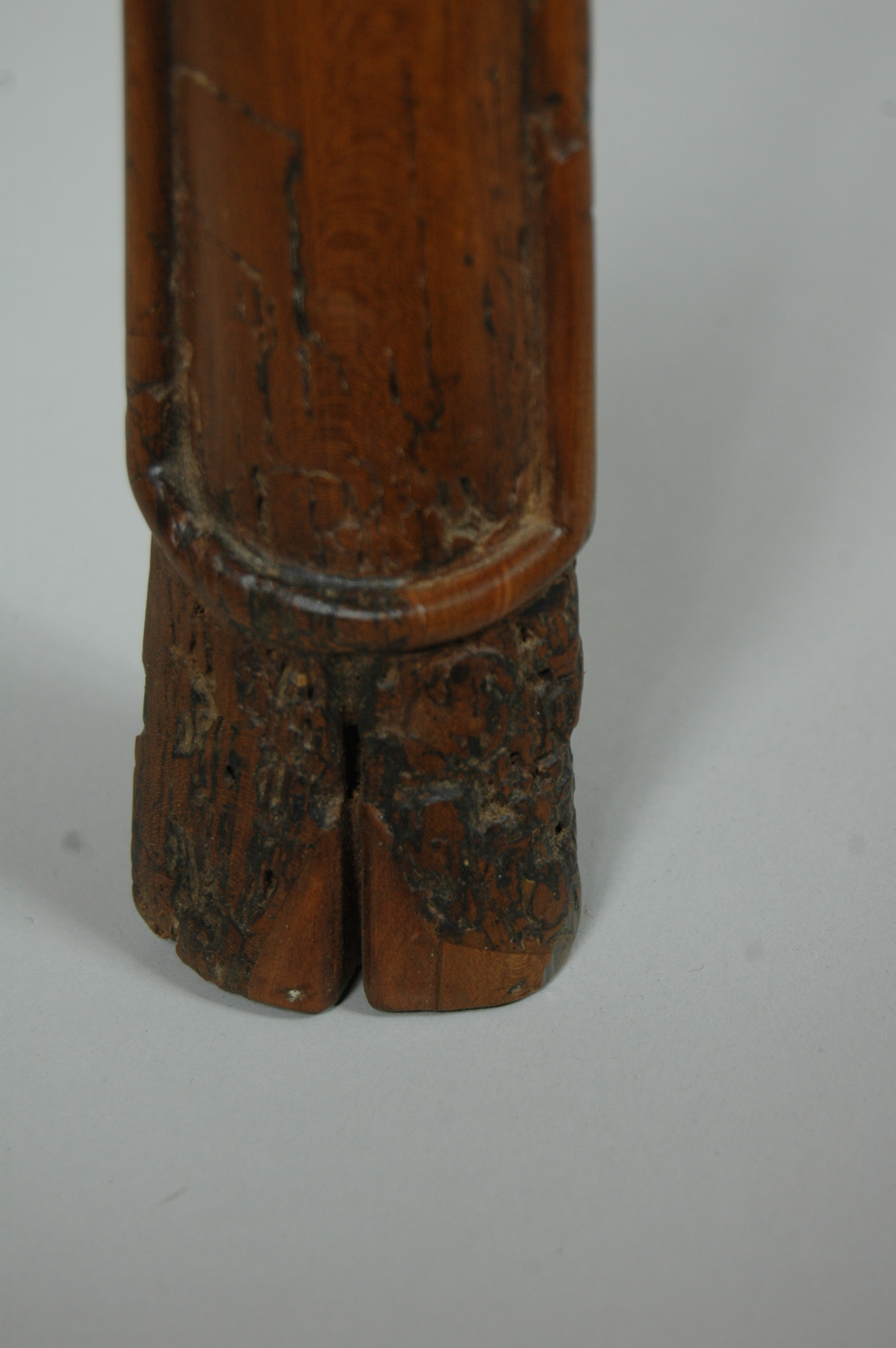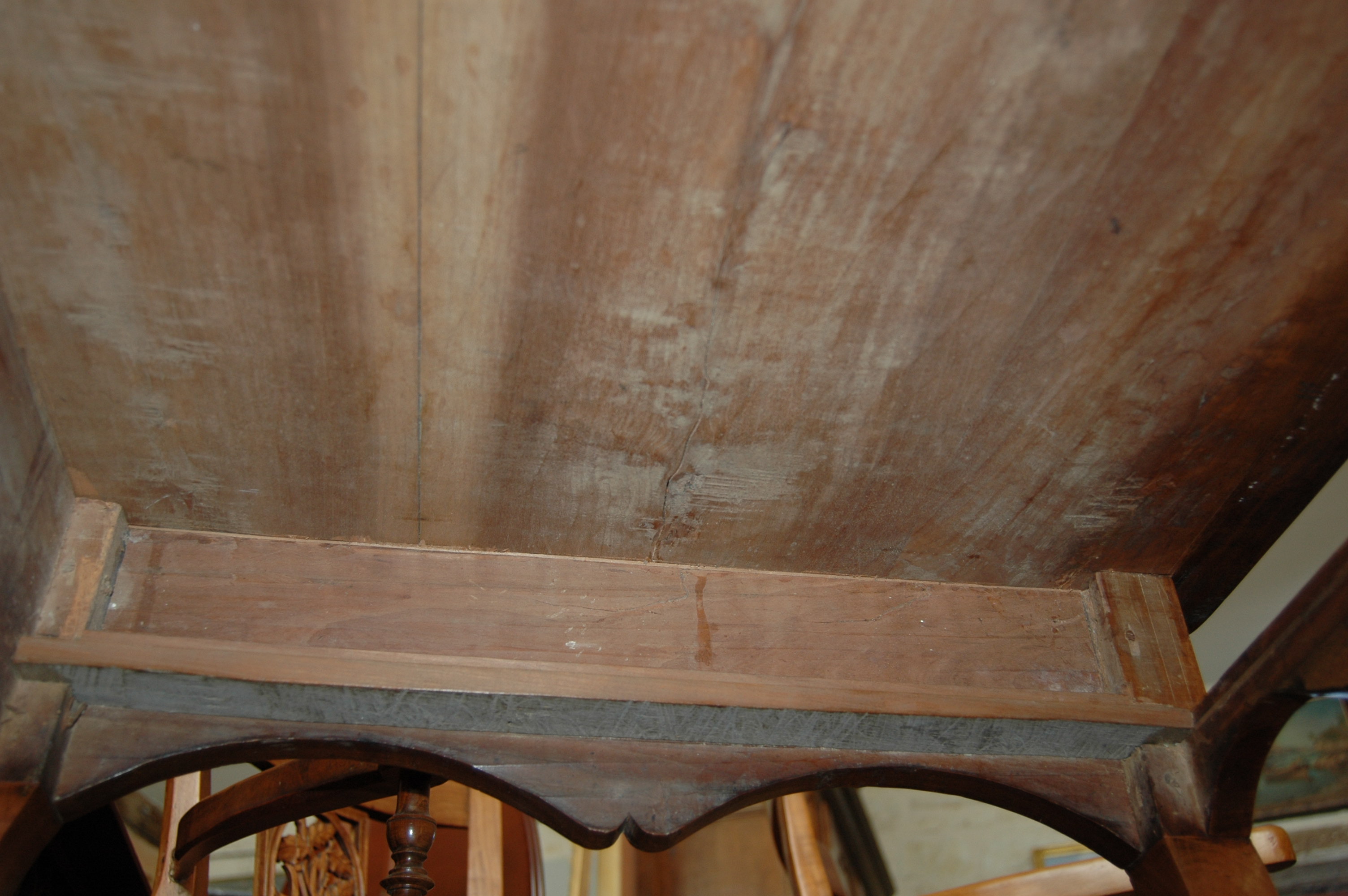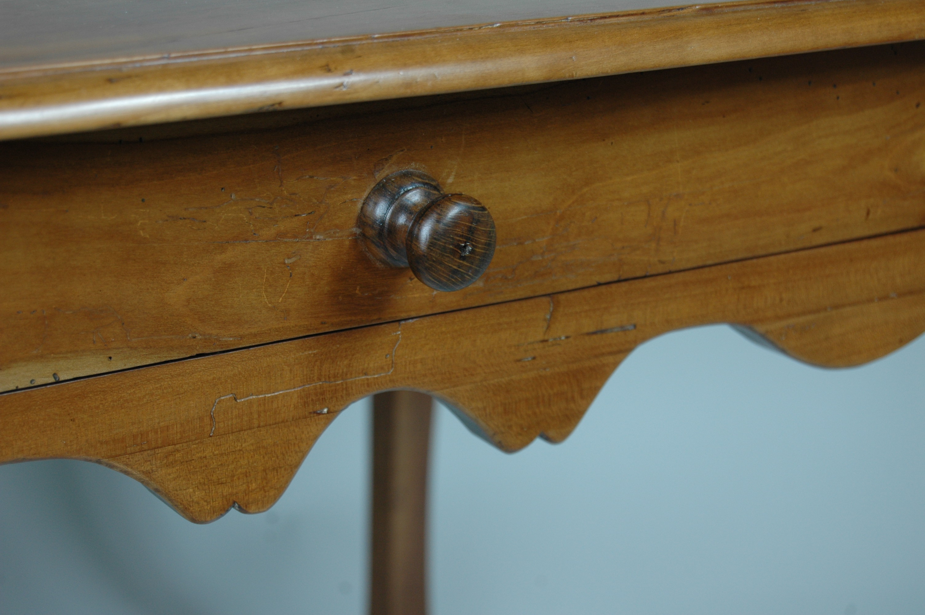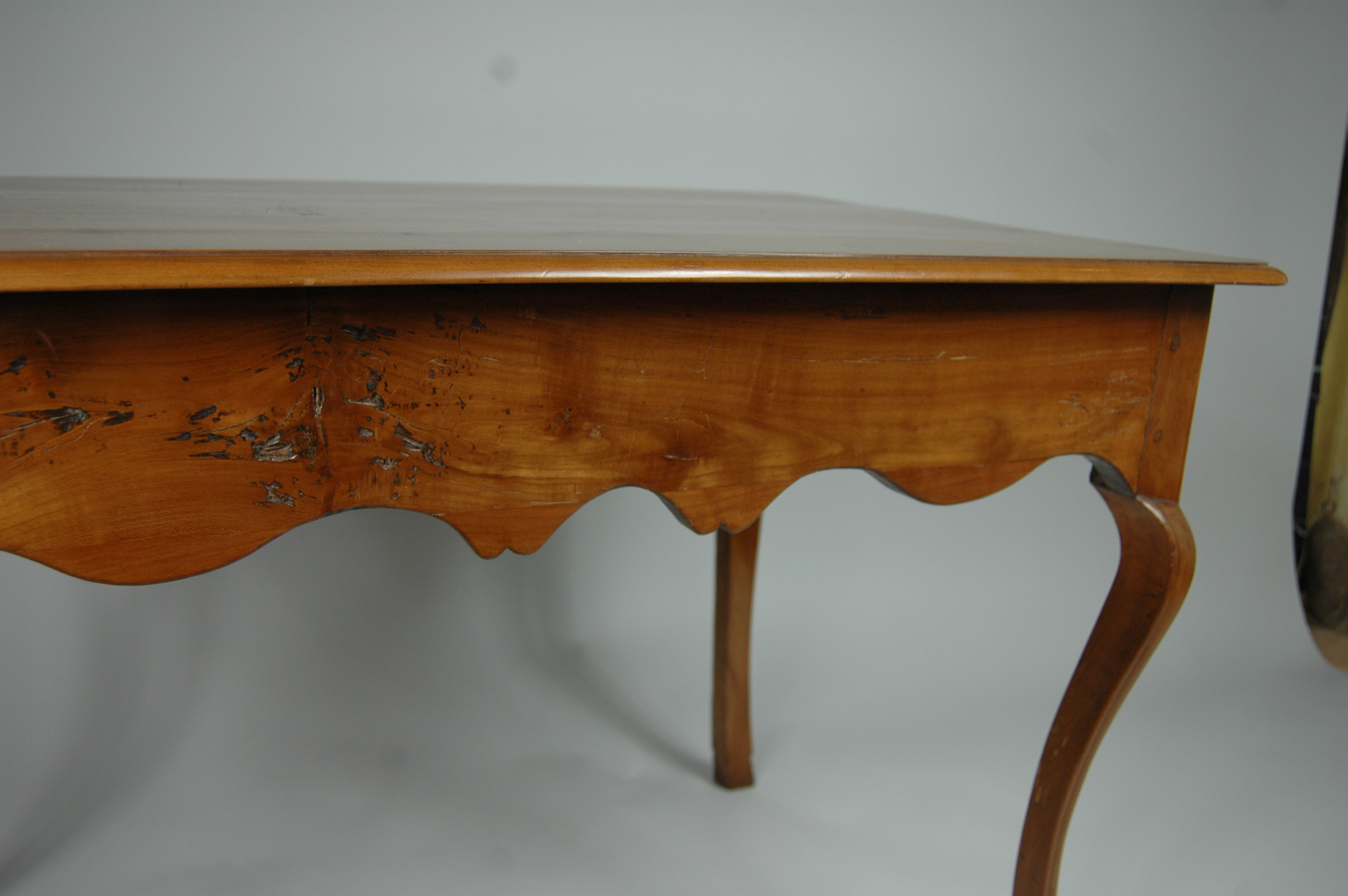 Table d'appoint Louis XV en merisier Table d'appoint Louis XV en merisier aux pieds largement cambrés. Pièces réalisées sur les traverses et les bouts de pieds, changement des coulisseaux de tiroir, réalésage des côtés. Les fonçures de tiroir sont en peuplier. Deuxième moitié du XVIIIe siècle. Fabrication des environs de La Rochelle. H: 66 - L : 88 – P:63,5 cm Prix : 1.600,00 € |