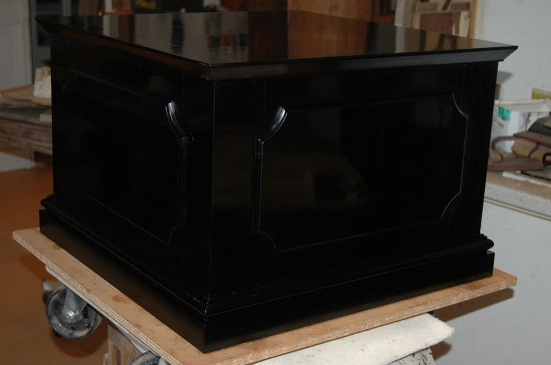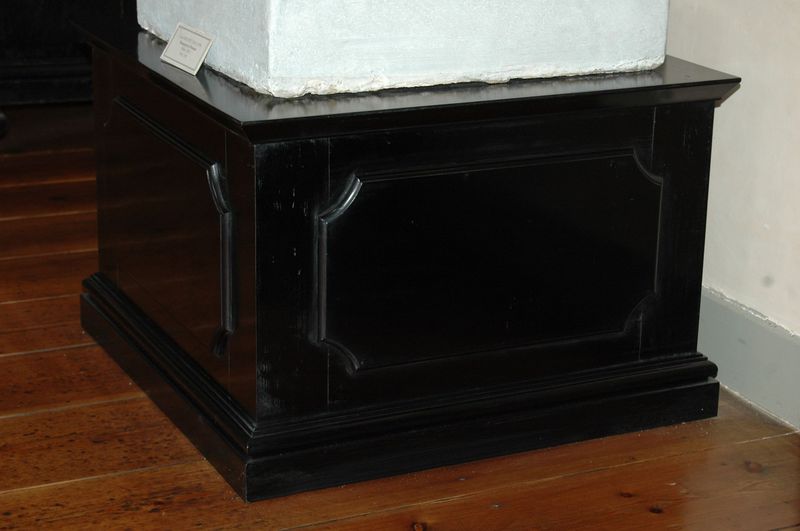 Dans le cadre d'un projet de réaménagement du musée Napoléon, j'ai été amené à proposer au conservateur du musée des modèles de socles et consoles s'accordant au mobilier de la pièces auxquels ils étaient destinés ; mobilier du XIXe siècle réalisé pour la princesse Mathilde. Le socle est réalisé en hêtre, pour les montants, et en sycomore.