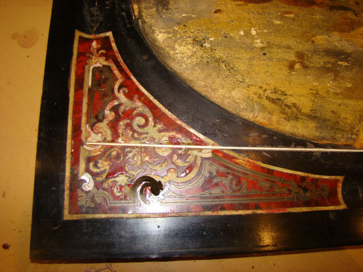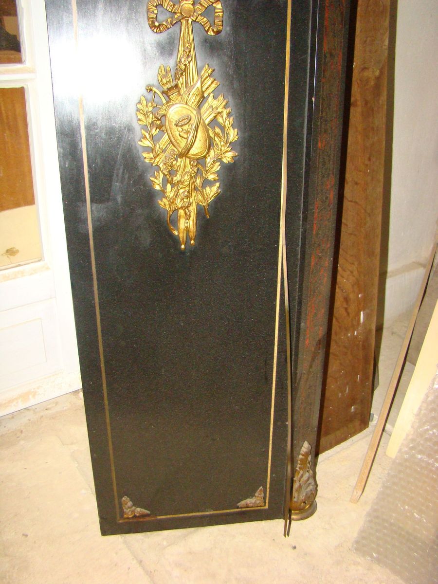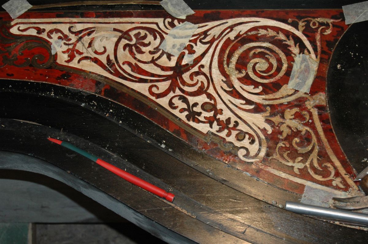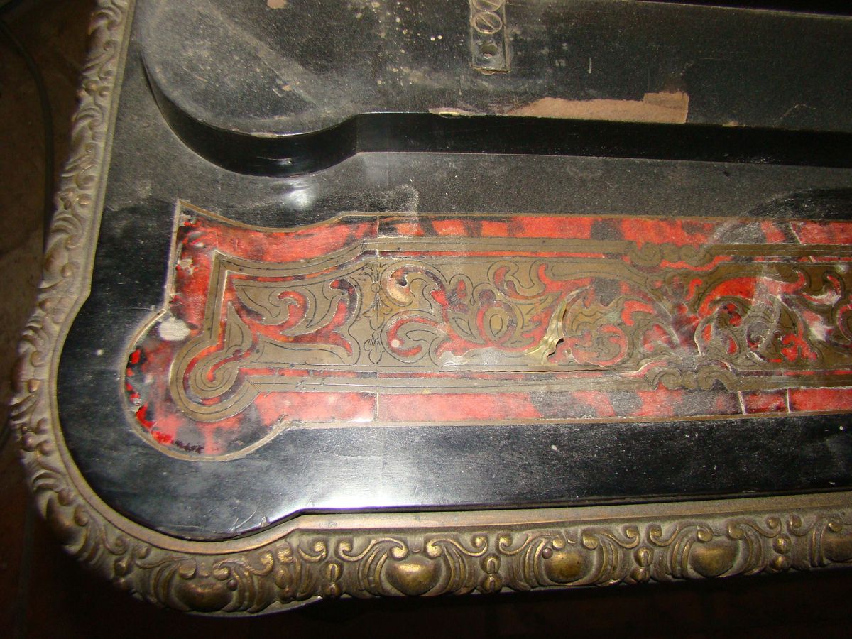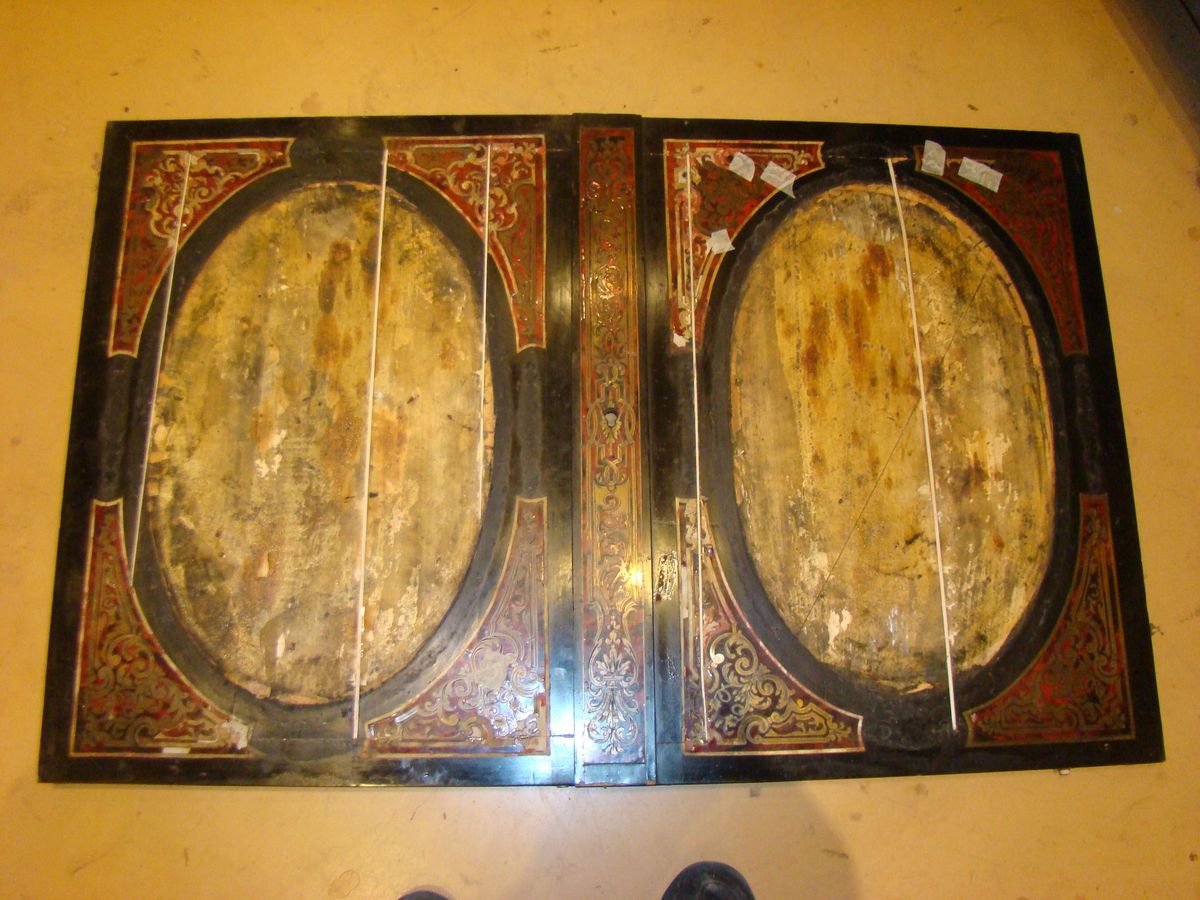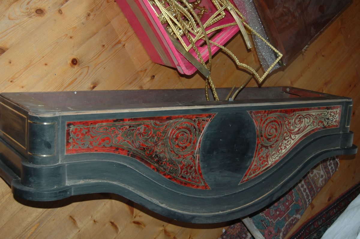 Buffet bibliothèque à deux corps de style Louis XV,d'époque Napoléon III marqueterie d'écaille sur fond rouge et laiton