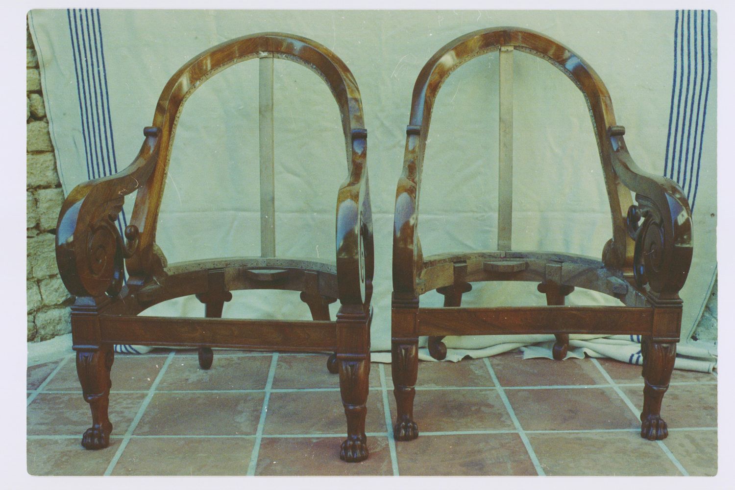 Ces fauteuils, assez monumentaux, proviennent de l’église des jésuites de La Rochelle et ont été restaurés pour être présentés au musée des Beaux Arts de La Rochelle.